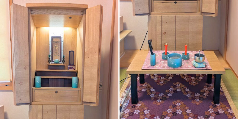 ――お仏壇には、控えめながら桜柄の木象嵌や彫刻。